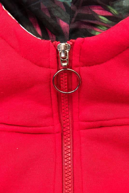 Červená tepláková souprava s květinovou kapucí